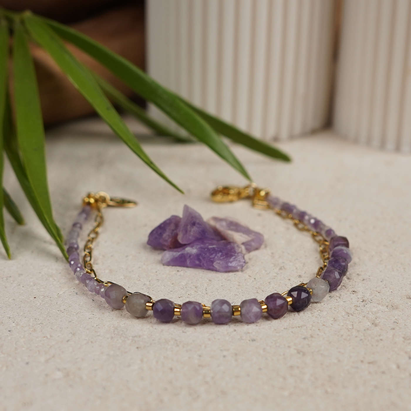 Each bracelet is handcrafted with natural Amethyst stones, carefully selected for their deep violet hues and soothing energy.